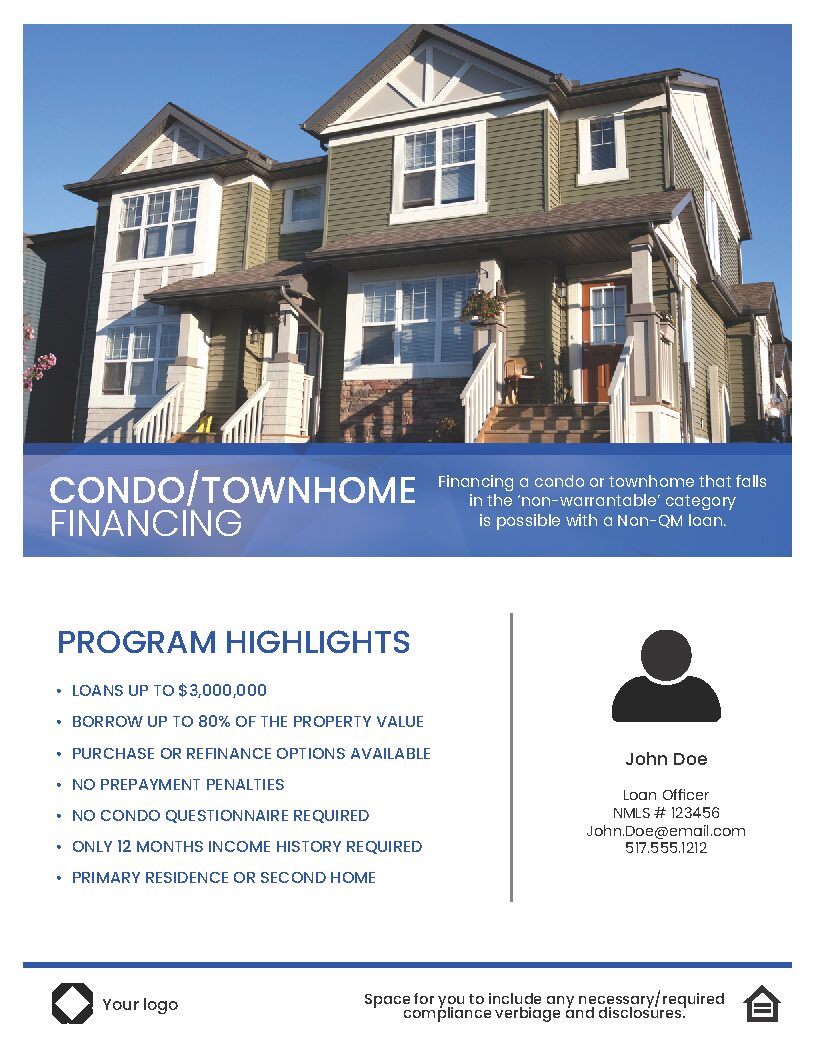 To get started, simply select the file that fits your needs, download the editable version, save it to your computer. Once saved, open the file from your saved version and begin personalizing it with your contact information, company logo and any necessary disclosures. These easy-to-use flyers are perfect for print, email and digital distibution – making your marketing efforts simple.